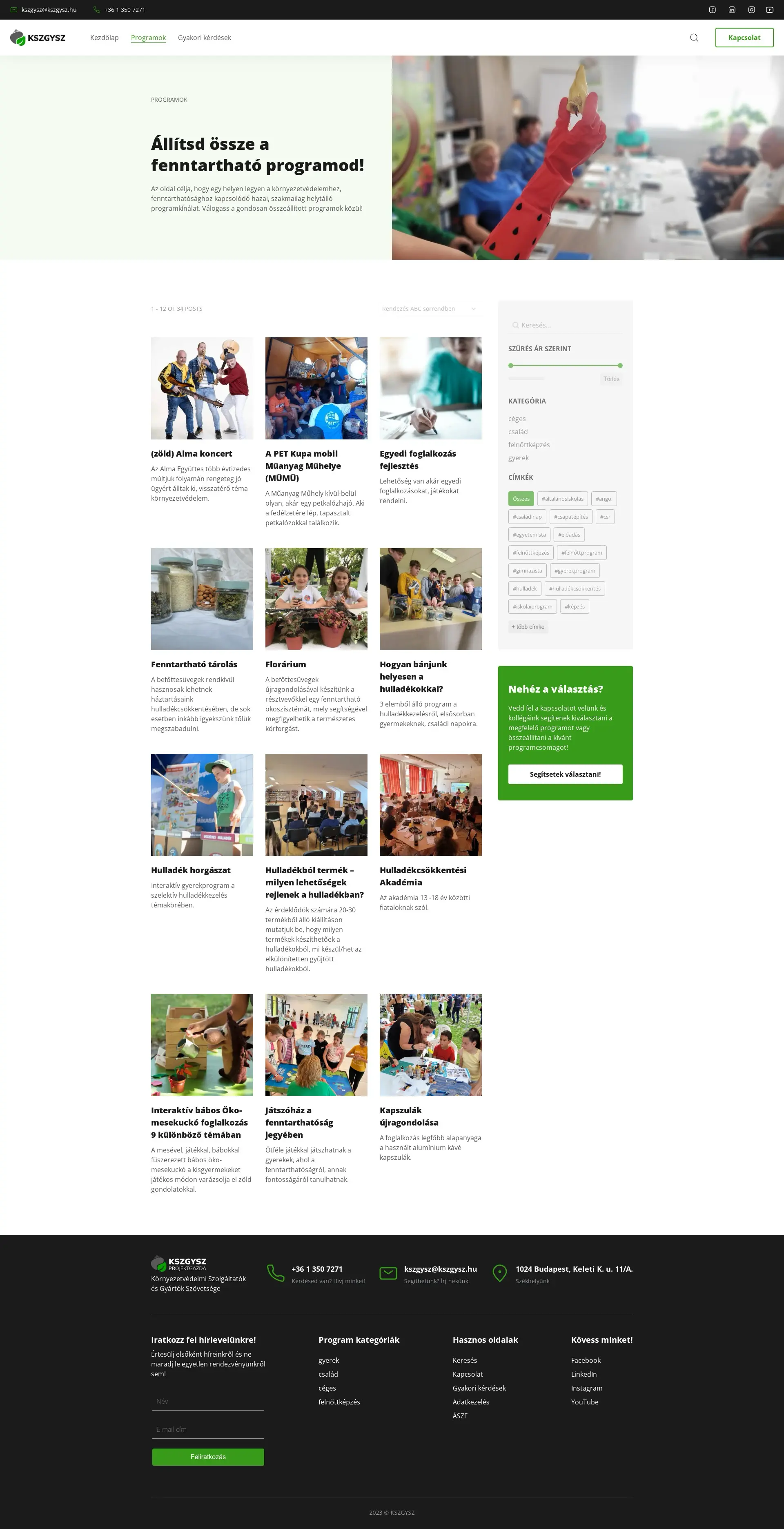 A családi- vagy tematikus napokat, iskolai és céges eseményeket szervezők így már a weboldalon ízelítőt kapnak a zöld programok hangulatából. A KSZGYSZ pedig már a konkrét programigényt látja a kapcsolatfelvétel formájában, így sokkal eredményesebben, célzottabban kezelhetik a leadeket.