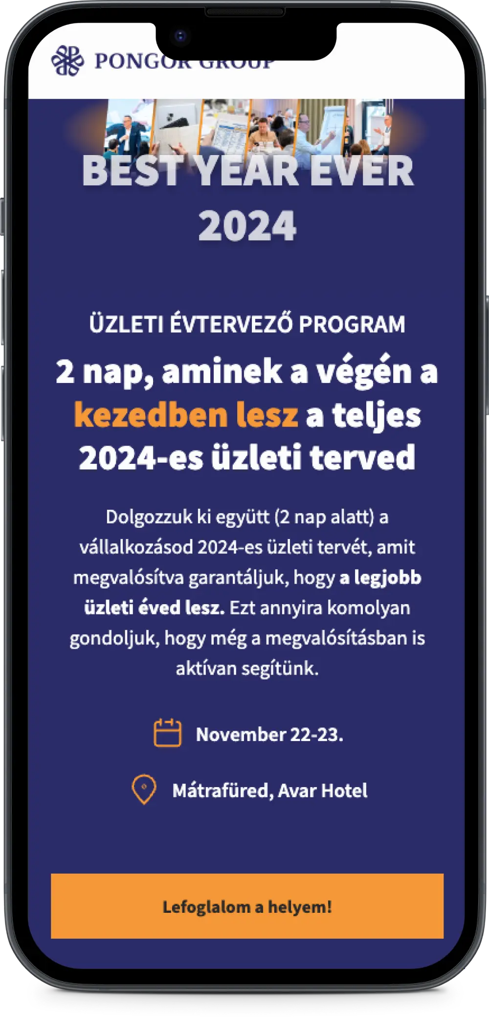 A Pongor Group kétnapos, “Best Year Ever 2024” nevű üzleti évtervező eseménye nem kevesebbet garantált a résztvevők számára, mint hogy olyan sikerkovács akciótervet dolgozhatnak ki együtt, amelyet megvalósítva 2024 “a legjobb üzleti évük” lehet.