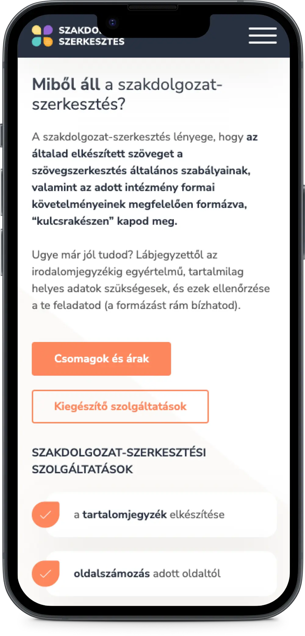 A Szakdolgozat-szerkesztés weboldala az első pixeltől az utolsóig megújult. A korábbi, sok elemében kihasználatlan, következetlen felületet felváltotta egy minden tekintetben professzionális, logikusan felépített, meggyőző weboldal, ahol egyértelmű, mit kell tenni a kapcsolatfelvételhez, a rendeléshez.